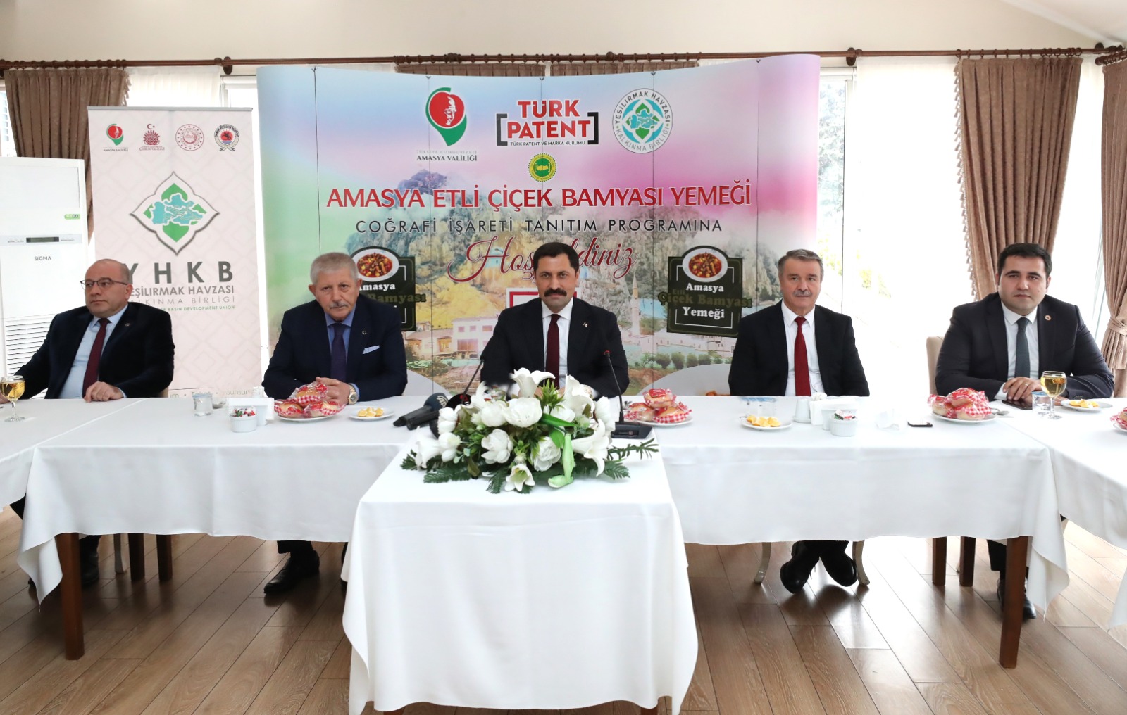 Valiliğimiz öncülüğünde Yeşilırmak Havzası Kalkınma Birliği tarafından coğrafi işareti tescil edilen İlimize özgü Amasya Etli Çiçek Bamyası Yemeğinin Coğrafi İşaret Tanıtım Programı gerçekleştirildi. Büyük Amasya Otelinde düzenlenen programda Valimiz Mustafa Masatlı, Belediye Başkanı Mehmet Sarı, protokol üyeleri, esnaf ve sanatkârlar odası temsilcileri, ticaret, sanayi odası temsilcileri ve Birlik Müdürümüz Mustafa Örgüt ile basın mensupları yer aldı.