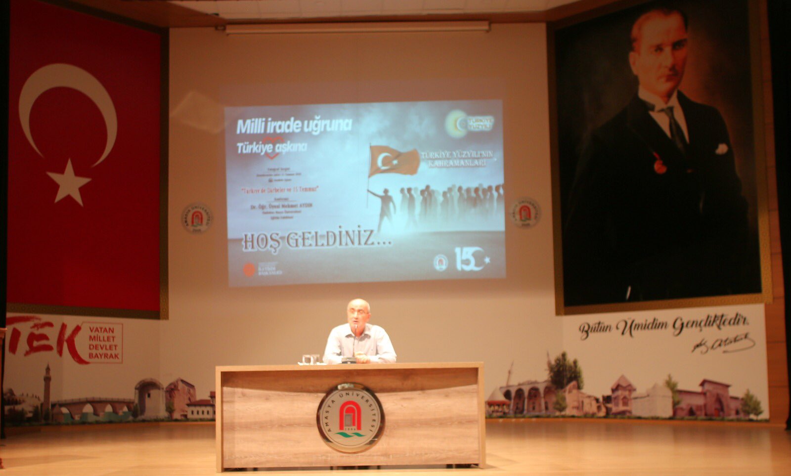 Yeşilırmak Havzası Kalkınma Birliği Birlik Müdürümüz Mustafa Örgüt; 15 Temmuz Demokrasi ve Milli Birlik Günü anma etkinlikleri kapsamında Amasya Üniversitesi yerleşkesinde, Dr. Öğr. Üyesi Mehmet AYDIN'ın konuşmacılığını yaptığı "Türkiye'de Darbeler ve 15 Temmuz" konulu konferansa katıldı.
